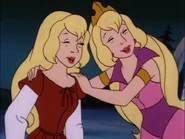Returning to Crow’s Wood under Sybilla’s spell, Brownwen meets a delighted Daphne and convinces her to switch identities to play a trick on Dirk and Timothy. Bronwen adorns Daphne’s crown and regal attire, then leads Dirk and Timothy on a quest to steal the Gryphon’s Stone, under the ruse of a rescue mission to save Rosemary, Daphne’s horse. Despite the real Daphne’s interference, the hypnotized Bronwen escapes with the Stone.