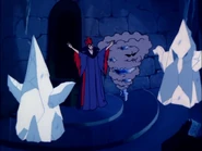 When the Snow Witch learned that Dirk the Daring had found a blue liquid that transforms fire into ice, she desired to have all of the liquid for herself. Together with her Ice Monsters, the witch intruded into King Ethelred's castle to demand the formula. Not satisfied with the single vial of liquid they gave her, she took Dirk and Ethelred away with her to hold as prisoners until Princess Daphne brought her more. When trying to escape, the Ice Monsters pursue Dirk and Ethelred through the castle, attempting to freeze them. After Dirk and Ethelred escape the castle, the Witch and the Ice Monsters ambushed them upon the snowy mountains. Ultimately, the villains are defeated when Dirk throws salt onto the Snow Witch and dispatches the remaining Ice Monsters with his sword.