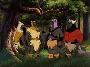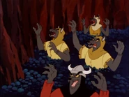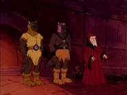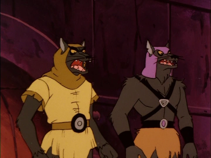 Shadmocks are a race of villainous creatures who feature exclusively in the Ruby-Spears Dragon's Lair animated series episode "The Pool of Youth." Appearing as anthropomorphic canines, the Shadmocks serve as henchmen to the evil witch Biralla, who seeks to strengthen her magical powers through regaining her youth. The Shadmocks do not appear to speak any discernable language but are intelligent creatures led by a commander, who is distinguished by a purple hood and receives instructions directly from Biralla.