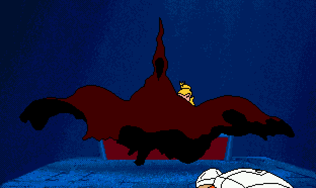 The Grim Reaper is the boss of the game’s third level: “The Hall of the Grim Reaper”, standing stationary and launching fireballs from its skeletal hand as Chattering Skulls also fly out of its head toward Dirk. The in-game sprite portrays the villain in a blue-tinted cloak with the possible inclusion of legs, a departure from the Reaper’s more iconic appearance as a floating specter in a red cloak.