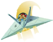 The ship's design closely resembles its appearance in the arcade game. After defeating Commander Borf with his own Infanto Ray, Ace and Kimberly visited the labs of an alien doctor in order to cure Ace from his condition of becoming teen in random intervals. After failing to do so, they returned to Earth, where Ace returned the ship's keys to the Intergalactic Alliance headquarters, boasting "...and not a scratch on it."